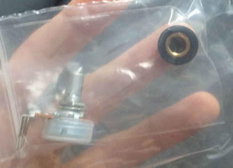 After two weeks the parts arrive from StewMac. On the bottom of the potentiometer it says Alpha, so I assume this is the correct model. Testing the fit proves my assumptions correct.