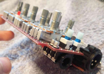 I start with the main PCB. Once I have that in place, I place the XLR connector in its cutout. After that, putting back the footswitches should not be too hard.