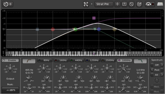 After the first drive I like to have a toneblock. A pretty normal guitar amp toneblock consists of a high-pass, low-pass and band pass filter. So I keep my second filter fairly minimal. Cut below 80, cut above 7-8k and cut around 500-800Hz.